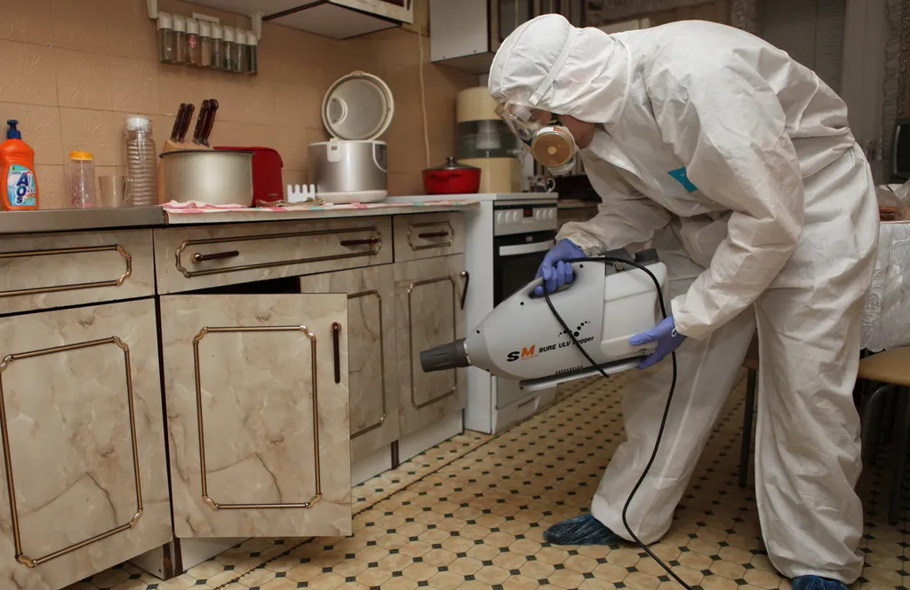 - Подготовка помещения; Необходимо убрать продукты питания, посуду и личные вещи, чтобы они не подверглись воздействию химических веществ.